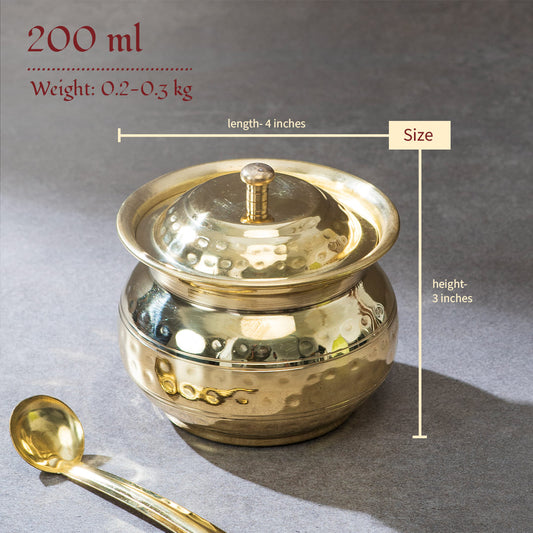 Brass Ghee Pot with spoon and Lid | 250 ML Capacity | 4 I...