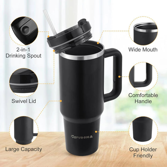 40oz Stainless Steel Insulated Water Bottle with Straw &a...