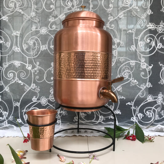 Pure Copper Half Hammered Water Dispenser with Glass and ...