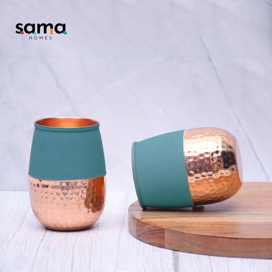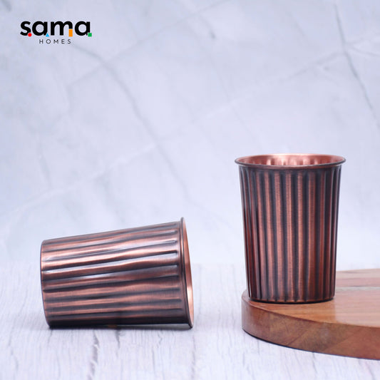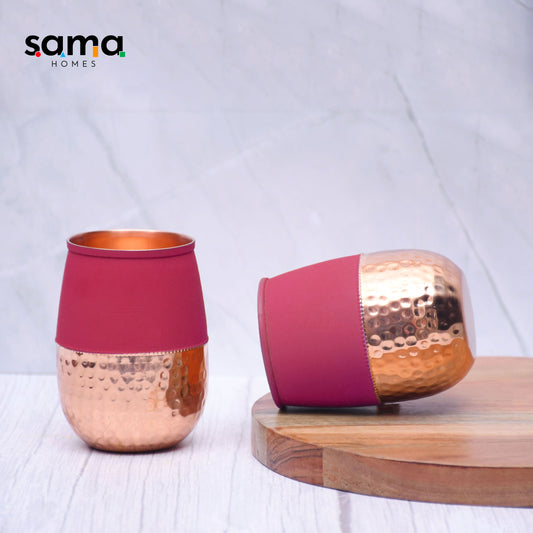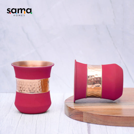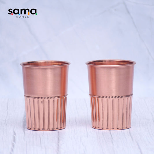 Pure Copper Water Glass Set of 2 Ring Design Tumbler Capa...