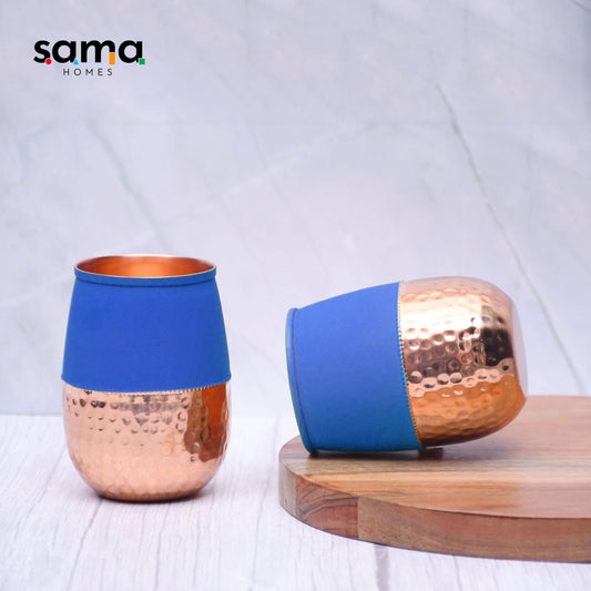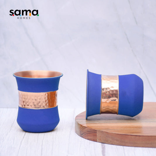 Pure Copper Water Glass Set of 2 Silk Blue Half Hammered ...