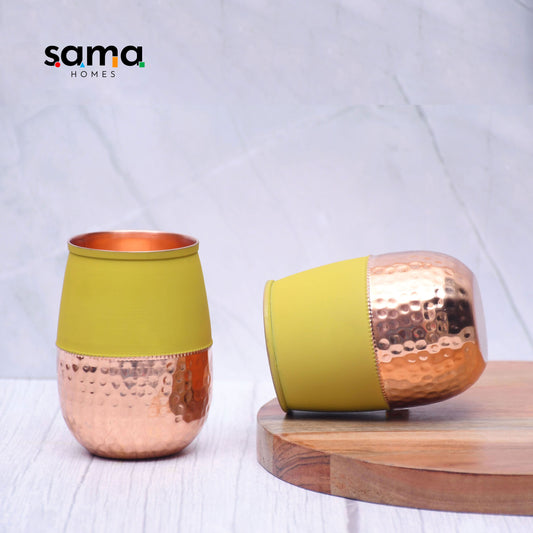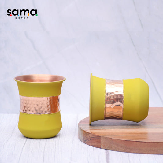 Pure Copper Water Glass Set of 2 Silk Yellow Half Hammere...
