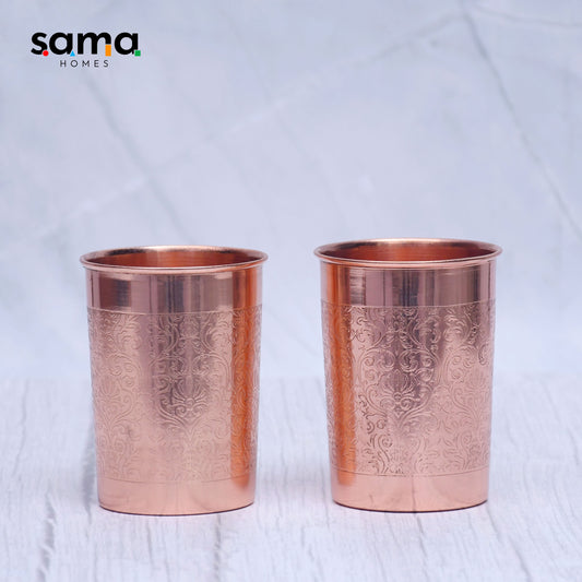 Pure Copper Water Glass Set of 2 Engrave Designed Tumbler...