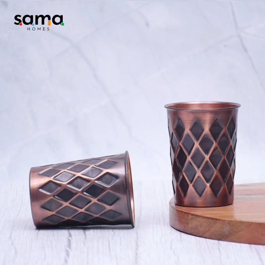 Pure Copper Water Glass Set of 2 Antique Diamond Design T...