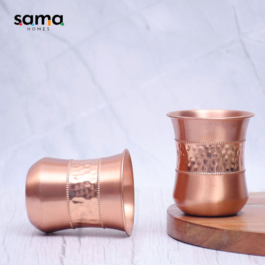 Pure Copper Water Glass Set of 2 Half Hammered Damru Tumb...