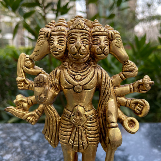 Brass Lord Panchmukhi Hanuman 7 Inches Idol
