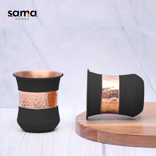 Pure Copper Water Glass Set of 2 Ring Design Tumbler Capa...