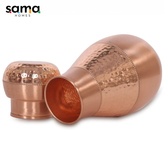 SAMA Homes' Pure Copper Water bottles and flasks - Buy from a wide range of Silk finish and, Antiques Designs Patterns. Available in 1 Liter, 1.4 Liter. Available with Copper Tumbler Set for Gifting on festivals.