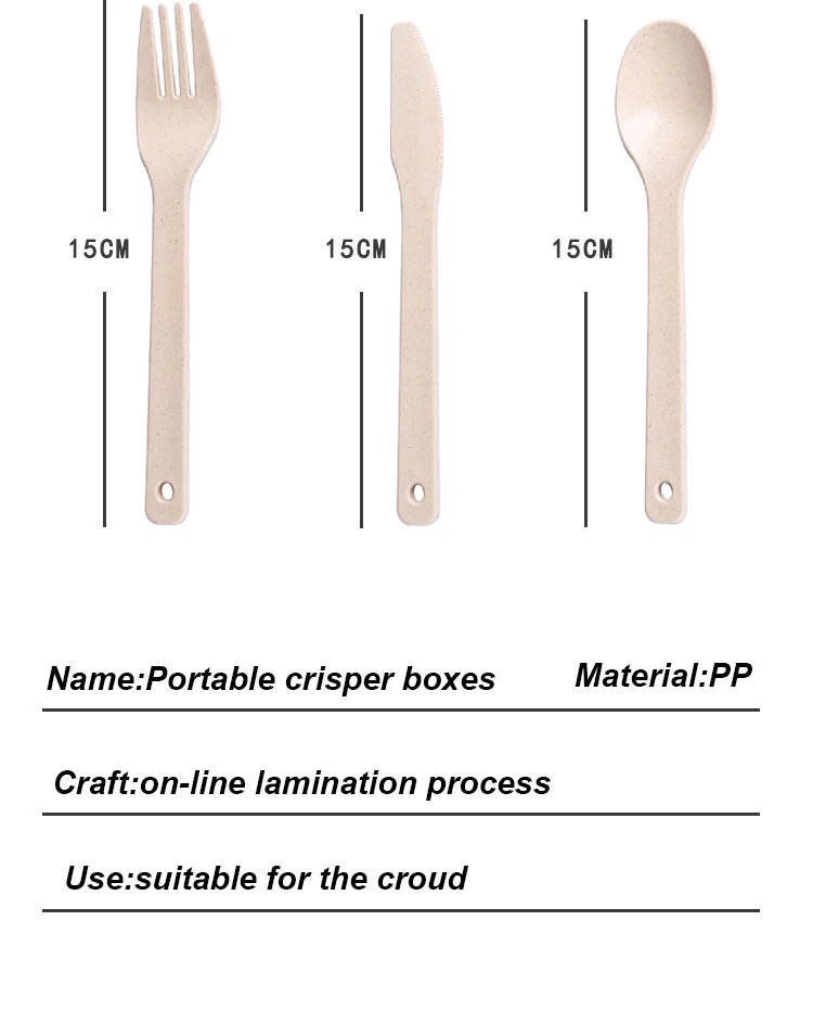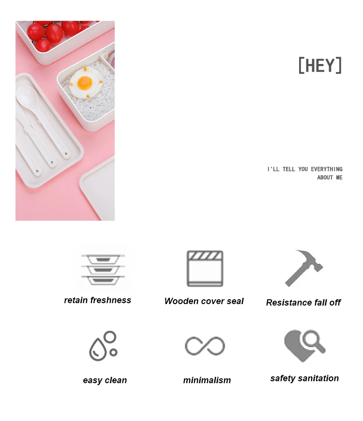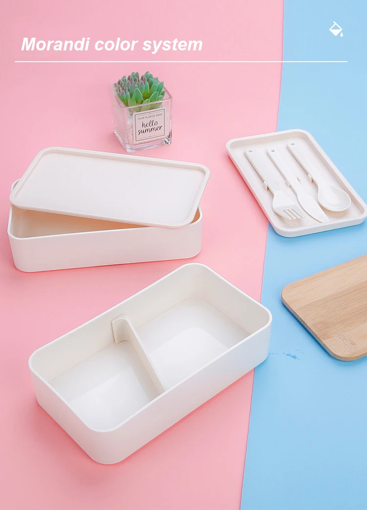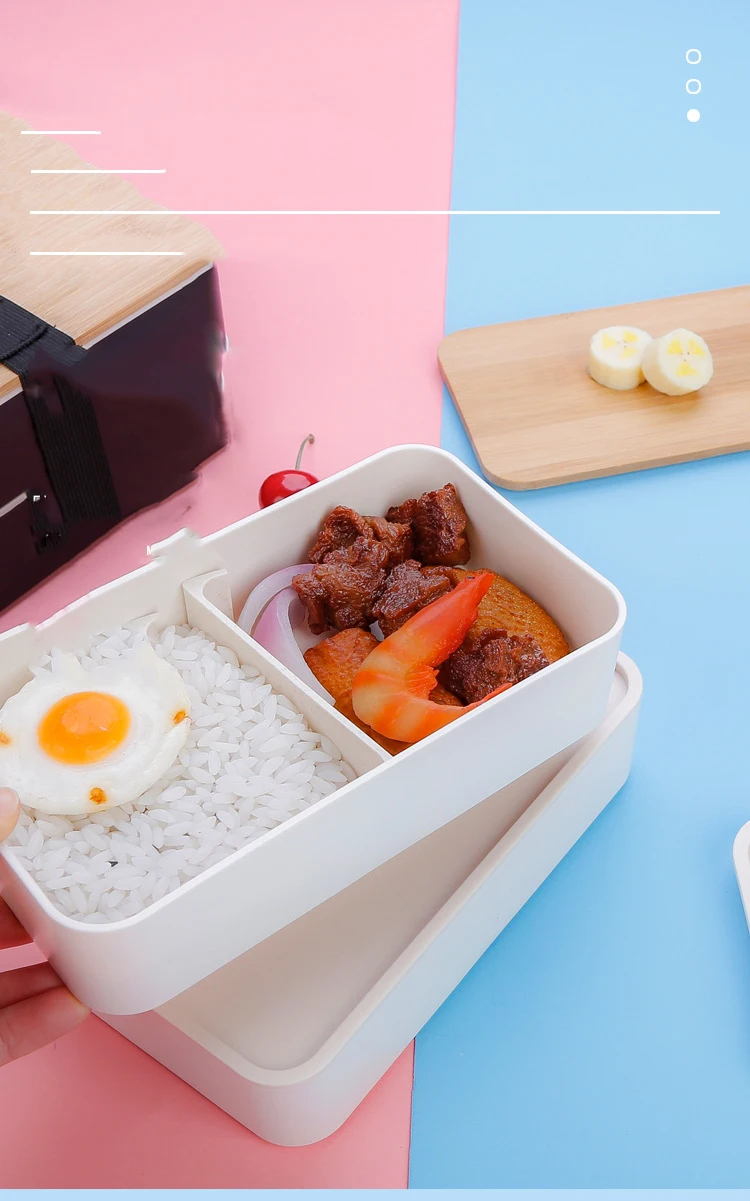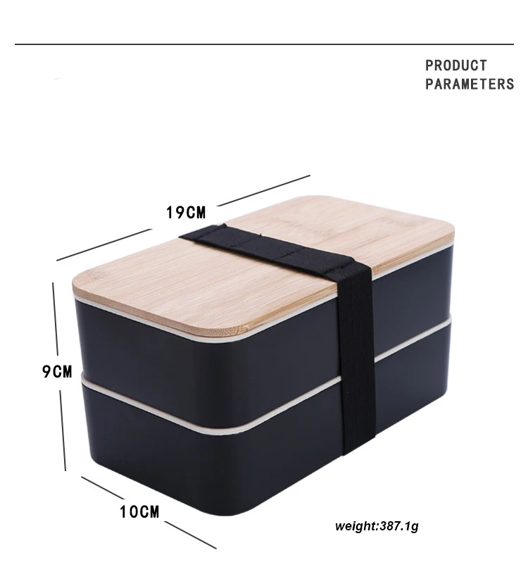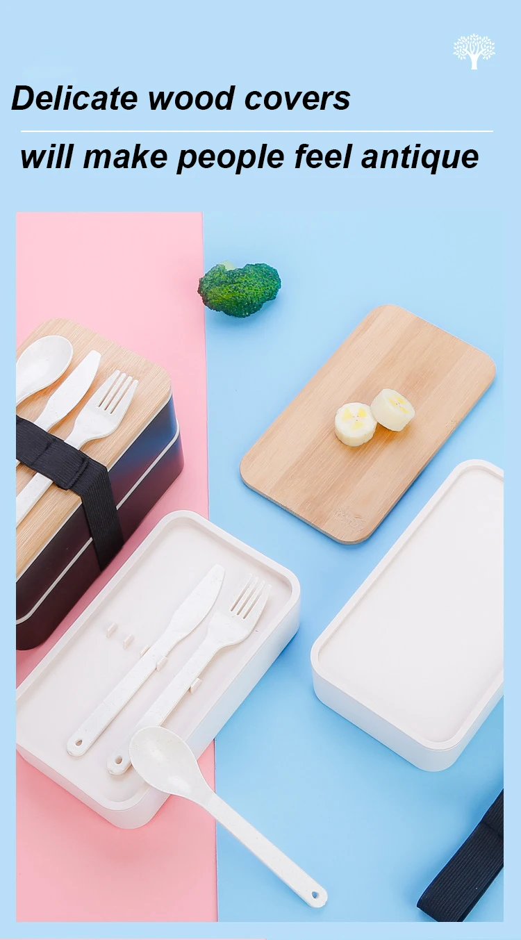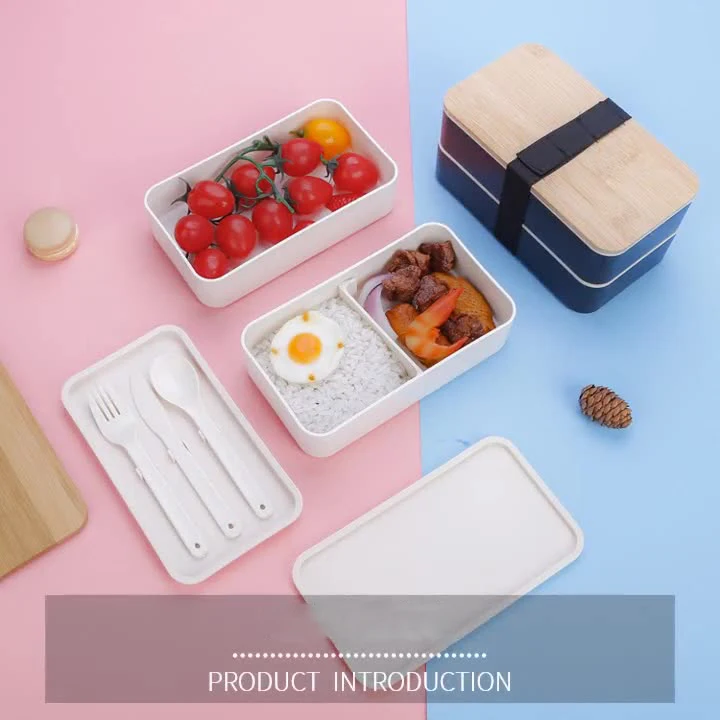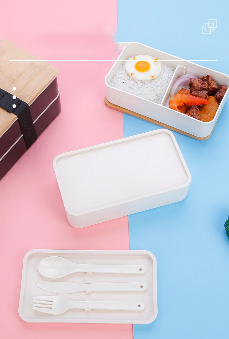 2-Layer Food Storage Container Portable Worker Student Wheat Straw Bento Lunch Box with Bamboo Lid Kitchen Utensils
