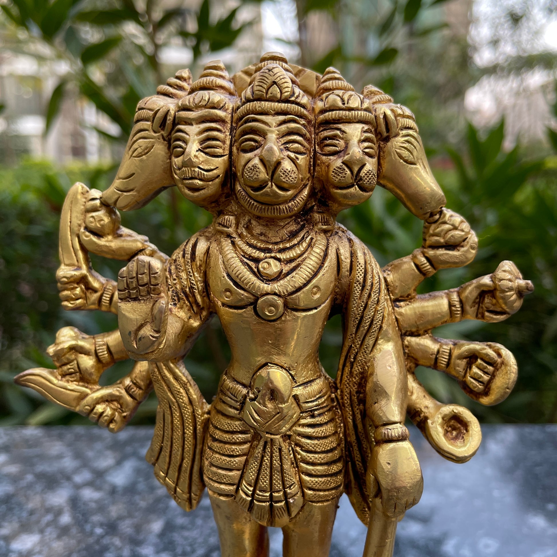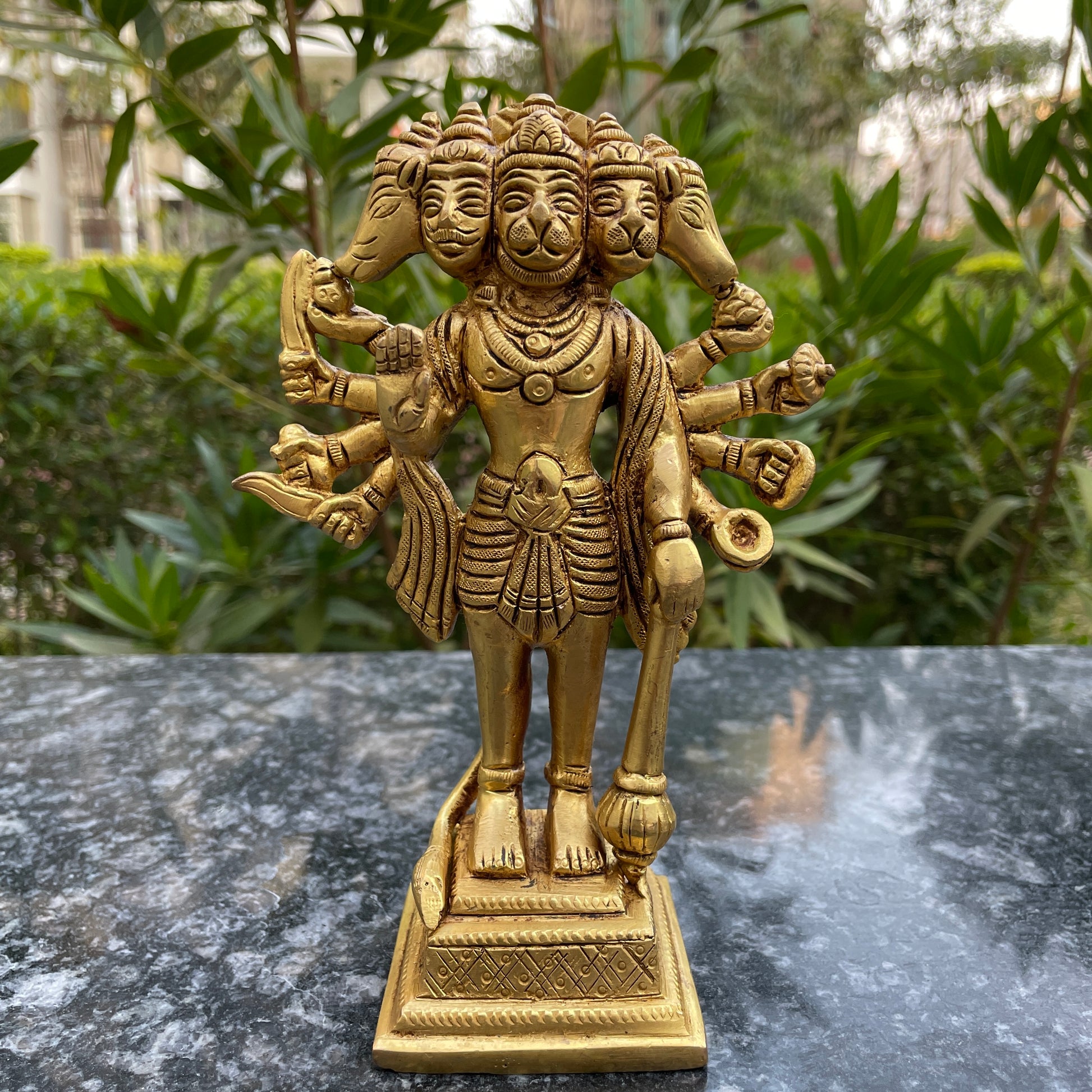 Brass Lord Panchmukhi Hanuman 7 Inches Idol