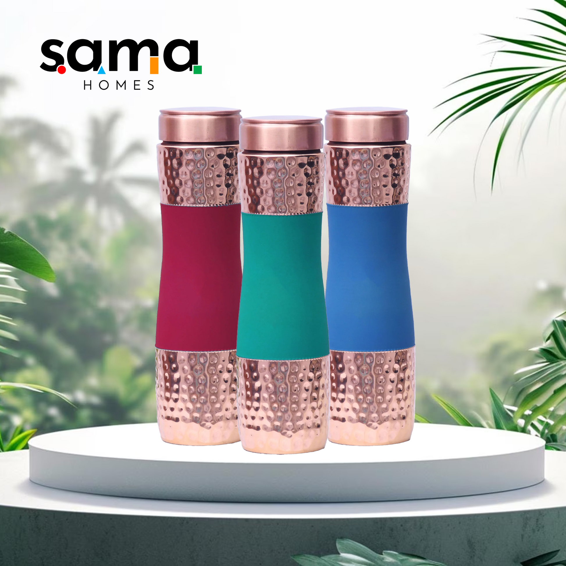 Pure Copper Water Bottle set of 3 - Red, Green, and Blue Color